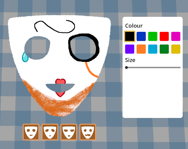 Made for the 2026 Global Game Jam (in about 48hrs). A simple game where you decorate a mask with pencils, stickers and glitter.
